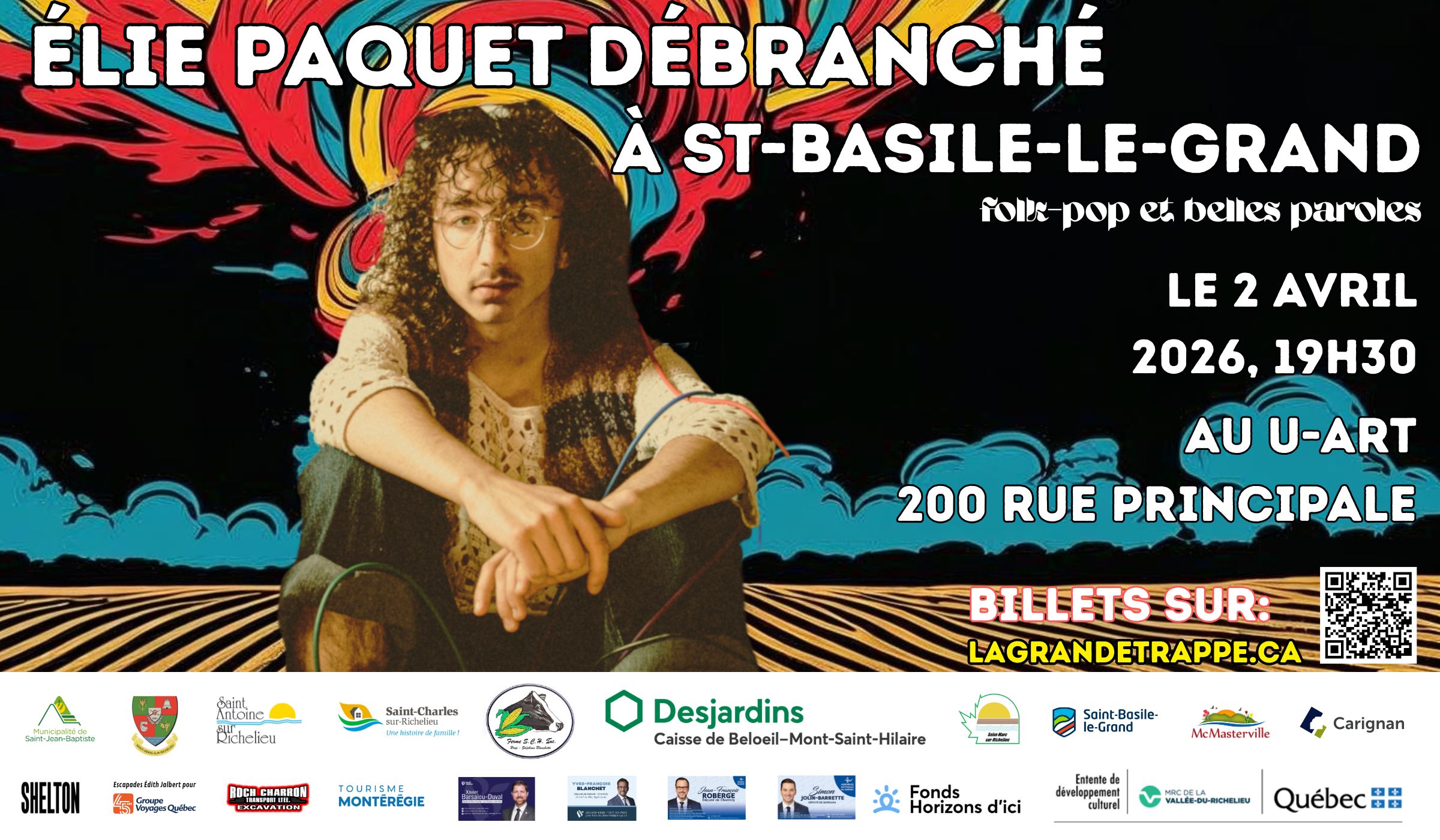 Élie Paquet, auteur-compositeur émergent de la région, vient nous présenter une version débranchée de son premier spectacle. Équipé de rien d'autre que sa guitare, son keyboard, ses pédales, son ordi (Élie a vraiment un gros char!), mais surtout de sa poésie tendre-crue et ses airs accrocheurs, il nous revient après avoir conquis sa première Place des Arts.